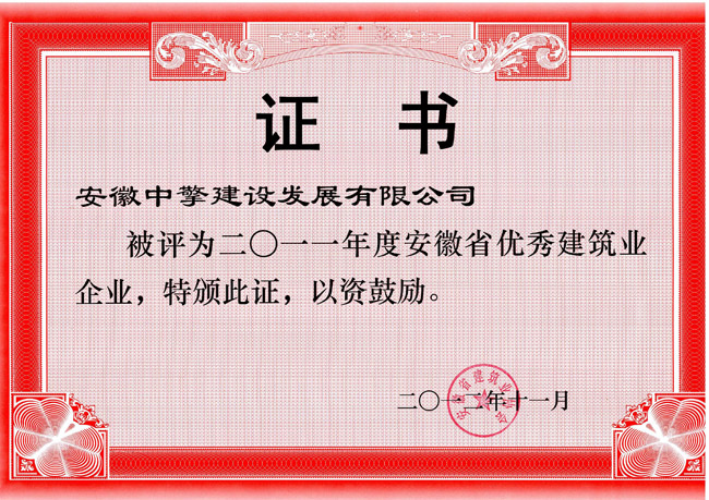 2011年度安徽省优秀建筑业企业