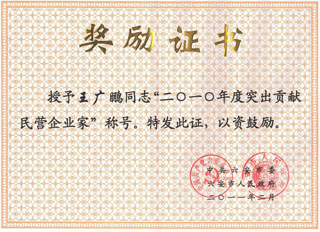 10年度民营企业家-王广鹏