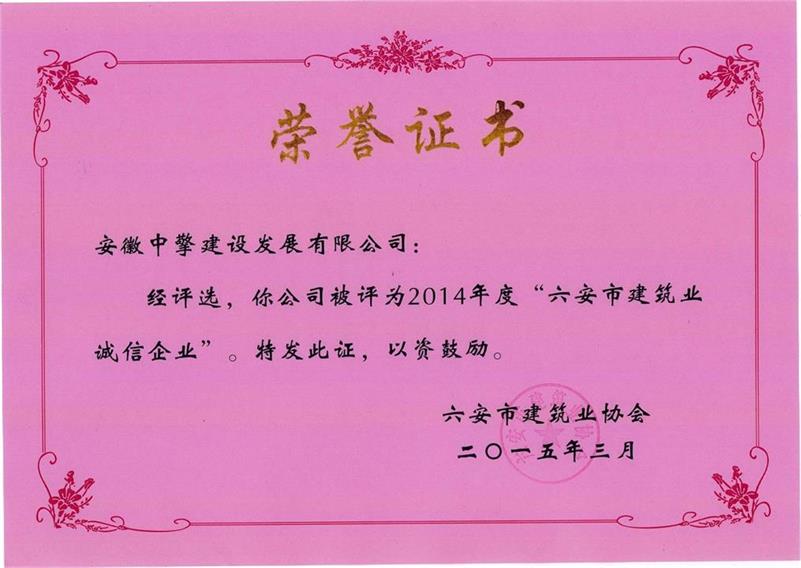 2014年度“六安市建筑业诚信企业”